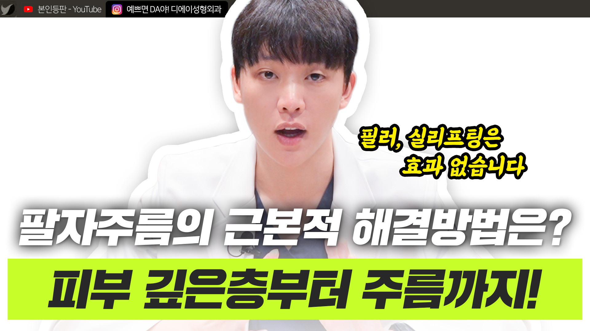 MORE VIEW 팔자주름의 근본적 해결방법은? 피부 깊은층부터 주름까지 해결?! 팔자주름의 근본적 해결방법, 디에이피부과 팔자주름 특화 쥬베실! 다운타임 없는 리프팅 중요한 일을 코앞에 앞두고 있다면? 결혼식 직전에도 가능한 다운타임 없는 유일무이 리프팅! 티타늄리프팅 다운타임&통증 적은 고주파리프팅, 세르프 요즘 핫한 그 리프팅! 세르프! DA스킨케어에서 간단하고 명확하게 알려드립니다! 유튜브 채널로 이동하기